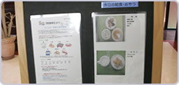 毎日のメニューをランチルームに掲示し、子ども達への食への関心を高めています。
