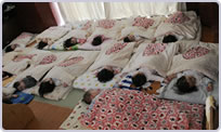 - ・抱いたり、愛撫をしたり、優しく言葉を掛けたりして情緒の安定を図り、楽しく活き活きとした園生活を送ることができるようにする。保育士とだけでなく、他の子ども達との交流を誘い出す。